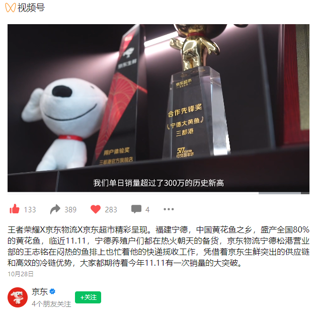 今年10月,更是与京东物流、京东超市一起携手千县名品,让宁德黄花鱼带着宁德人的祝愿和期许,游向世界的每一处。这条“国鱼”也不负众望,在京东双十一活动中的销量增长突破400%,在一众名品中脱颖而出。